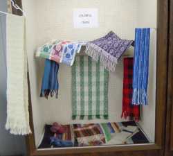 handspun items. Included in the cabinet are items made from the Cormo sheep wool that we used for demonstrating the stages of wool processing.