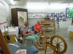 handspun items. Included in the cabinet are items made from the Cormo sheep wool that we used for demonstrating the stages of wool processing.